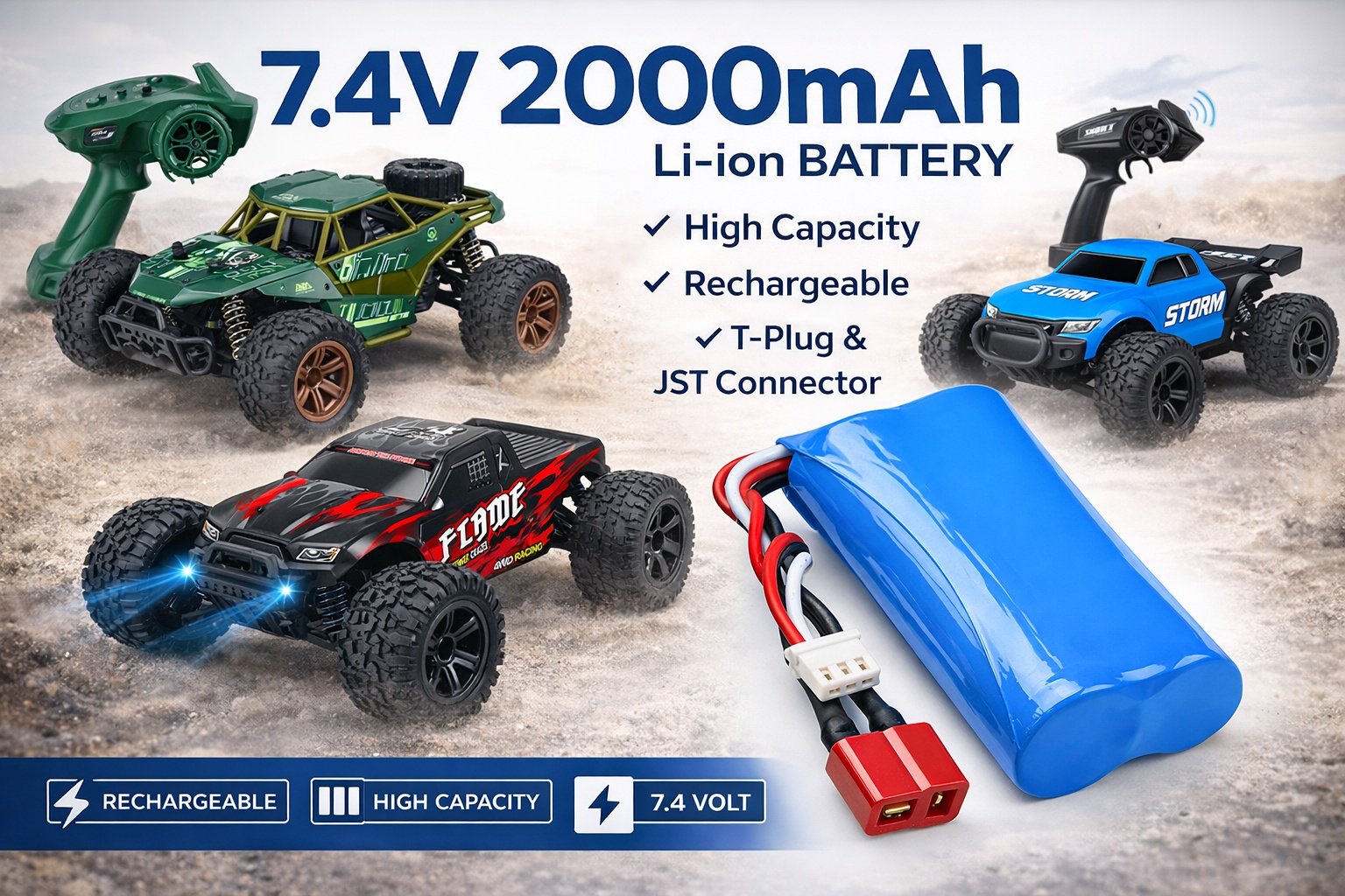 Verbeter je RC-auto ervaring met de 7,4V 2000mAh Li-ion accu. Ontworpen voor langere gebruiksduur en consistente energie, zorgt deze accu ervoor dat je RC-auto 1,5 – 2 uur per lading snel en soepel rijdt. Het compacte en lichtgewicht ontwerp is ideaal voor zowel competitieve races als recreatief gebruik. Met een brandwerend “fire catcher” ontwerp en correct gebruik biedt het een veilige en betrouwbare energiebron voor al je RC-avonturen.