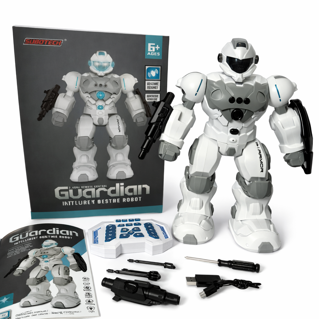 Deze interactieve actie robot zorgt voor urenlang speelplezier. Dankzij de bewegende functies, licht- en geluidseffecten komt deze futuristische robot echt tot leven. Het stoere ontwerp met schild en blaster maakt het spel extra spannend en stimuleert fantasierijk spelen.