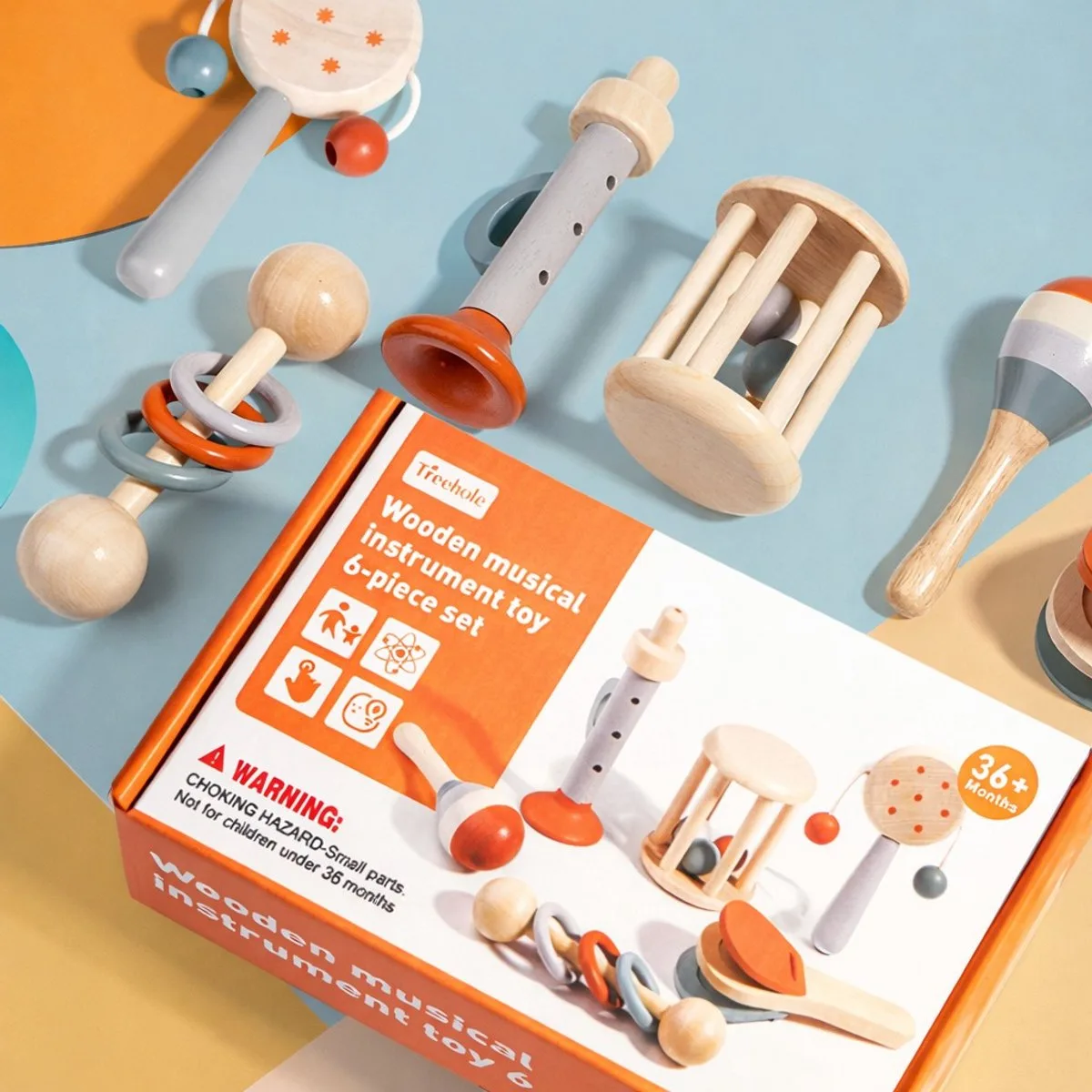 De set is ontworpen met veilige, afgeronde vormen en zachte kleuren, waardoor het ideaal is voor kleine handjes. Kinderen kunnen zelfstandig spelen of samen muziek maken, wat zorgt voor interactief en leerzaam speelplezier.
