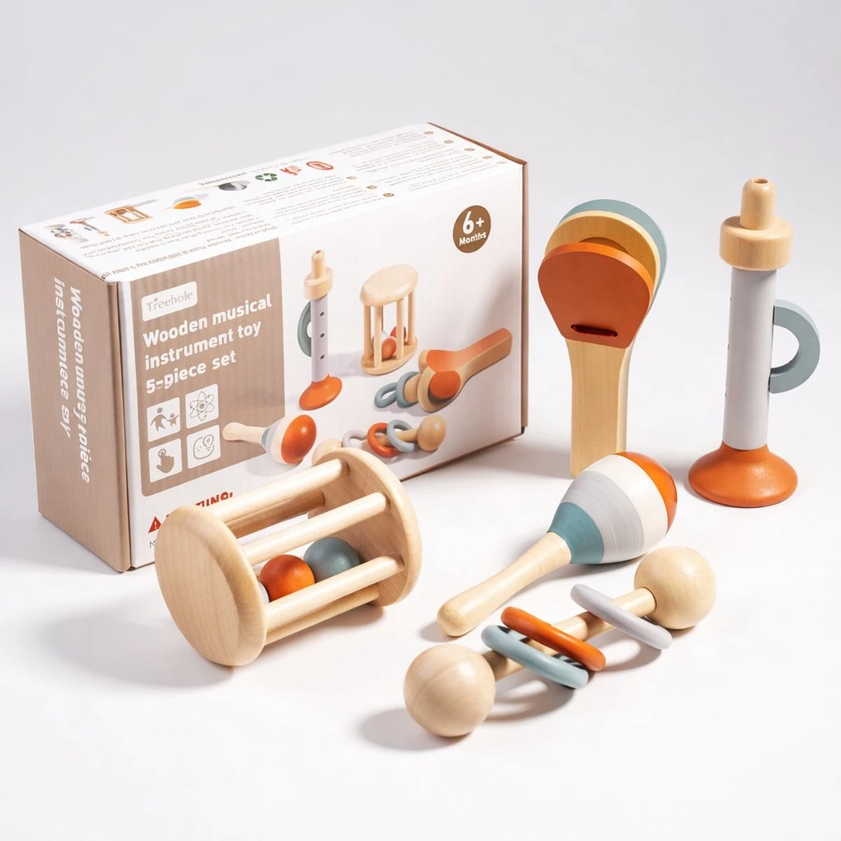 Deze houten muziek instrumenten set van 6 onderdelen is perfect voor jonge kinderen die spelenderwijs muziek willen ontdekken. Met verschillende instrumenten zoals een fluit, rammelaar en trommel ontwikkelen kinderen hun gevoel voor ritme, geluid en creativiteit.