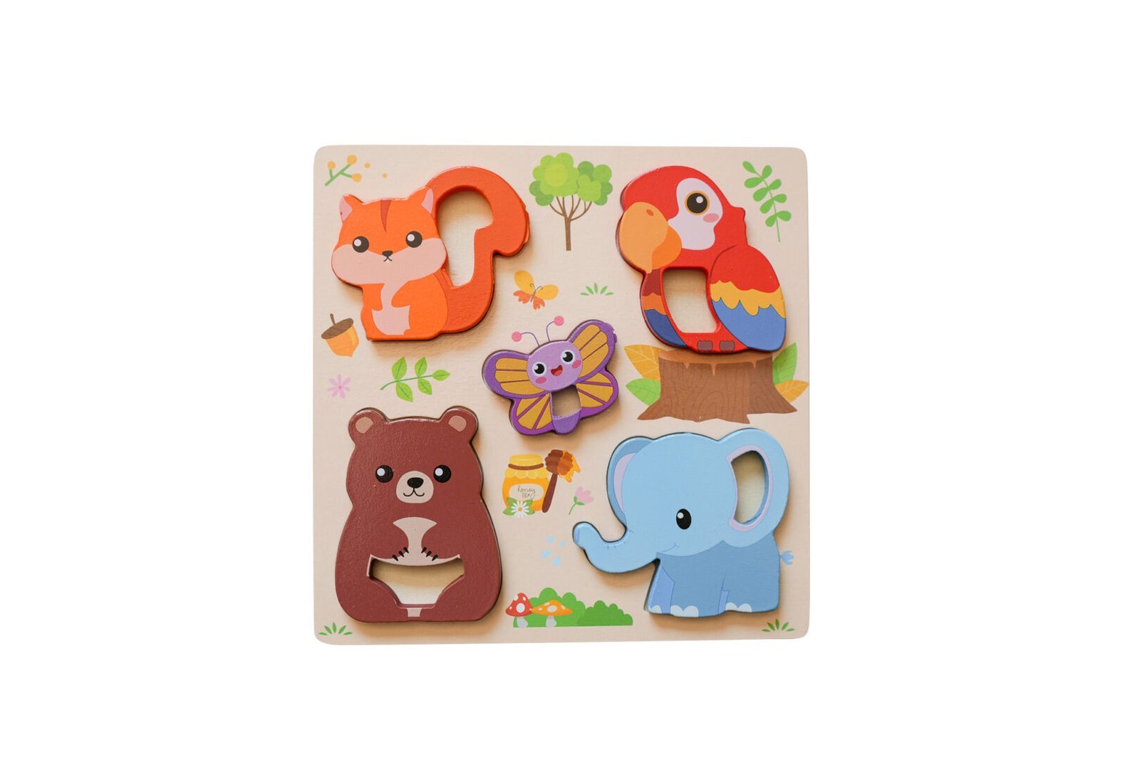 - Bosdieren: Eekhoorn, papegaai, olifant, beer, vlinder