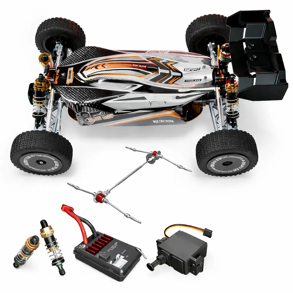 • With a  metal chassishydraulic shock absorbers  and  an all-metal transmission  , this car is built for  durability, stability and extreme performance  – on any terrain.