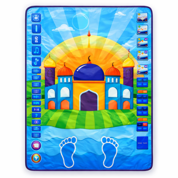 Deze educatieve islamitische gebedsmat helpt kinderen spelenderwijs bidden te leren. Met licht- en geluidsfuncties leert je kind stap voor stap salat, dua’s en bewegingen. Ideaal voor thuis en islamitisch onderwijs.