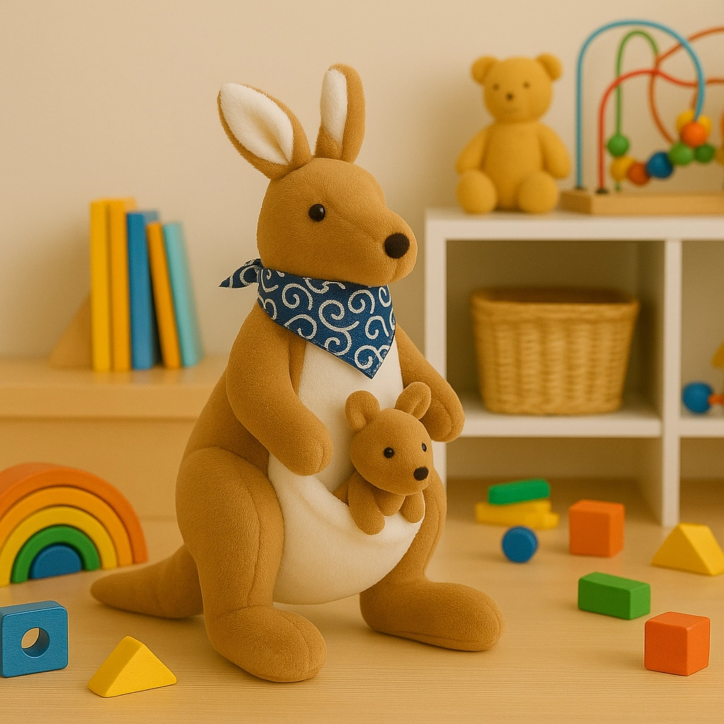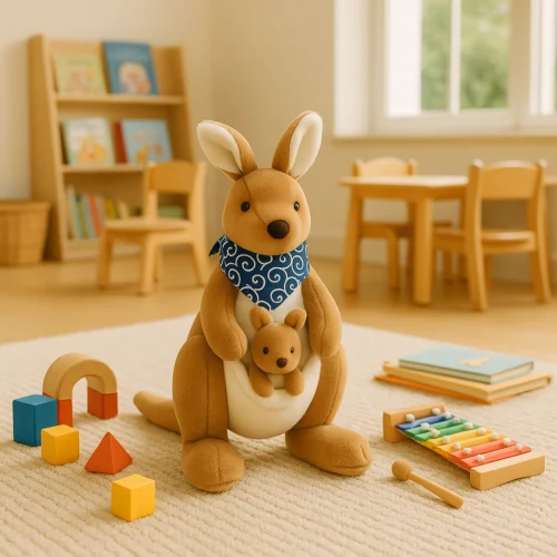 Deze lieve kangoeroe heeft een geheime buidel waar kleine knuffeltjes (of lekkernijen!) in passen. Ideaal voor rollenspel en creatieve leerervaringen.