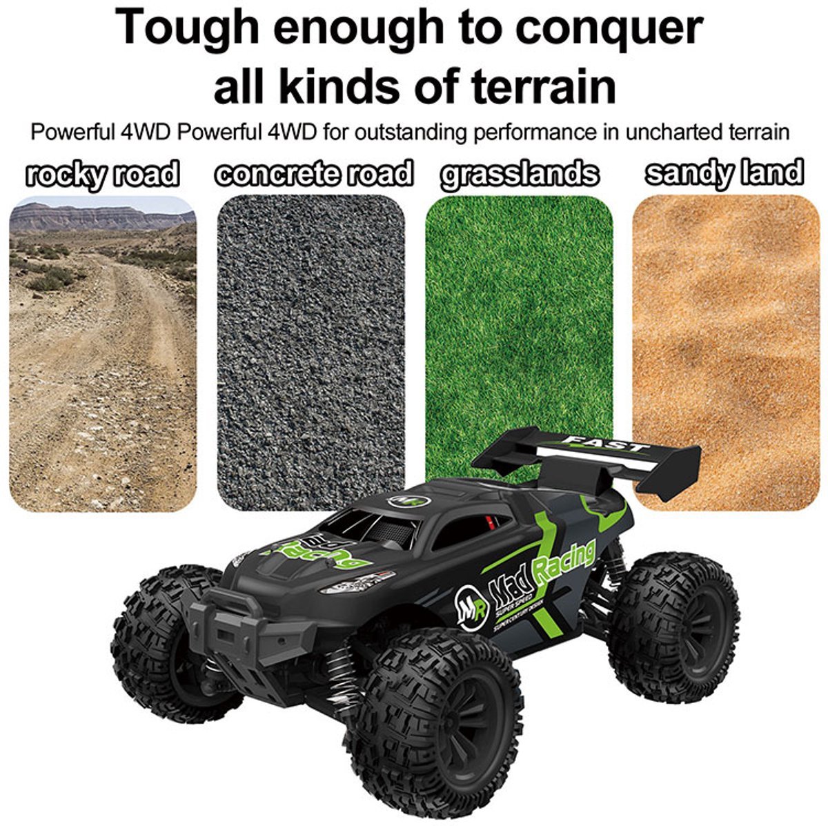• Fast & Powerful:  Reach speeds of up to  35 km/h  with the  1:18 scale RC car  – perfect for exciting off-road races!