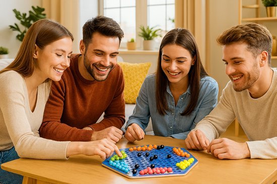• Chinees Dammen / Halma bordspel – klassiek strategisch spel met kleurrijke knikkers, geschikt voor jong en oud.