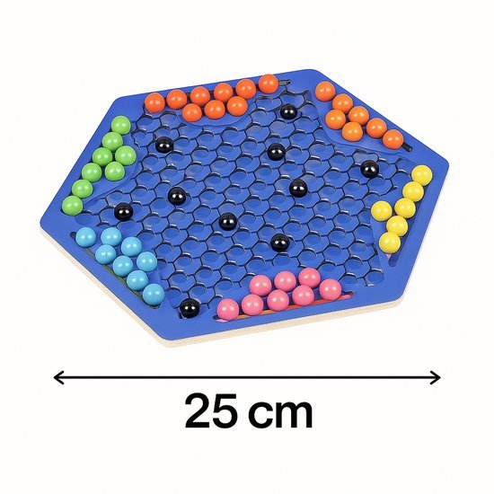 • Gekleurde knikkers in stevig bord – duurzame kwaliteit voor jarenlang speelplezier.