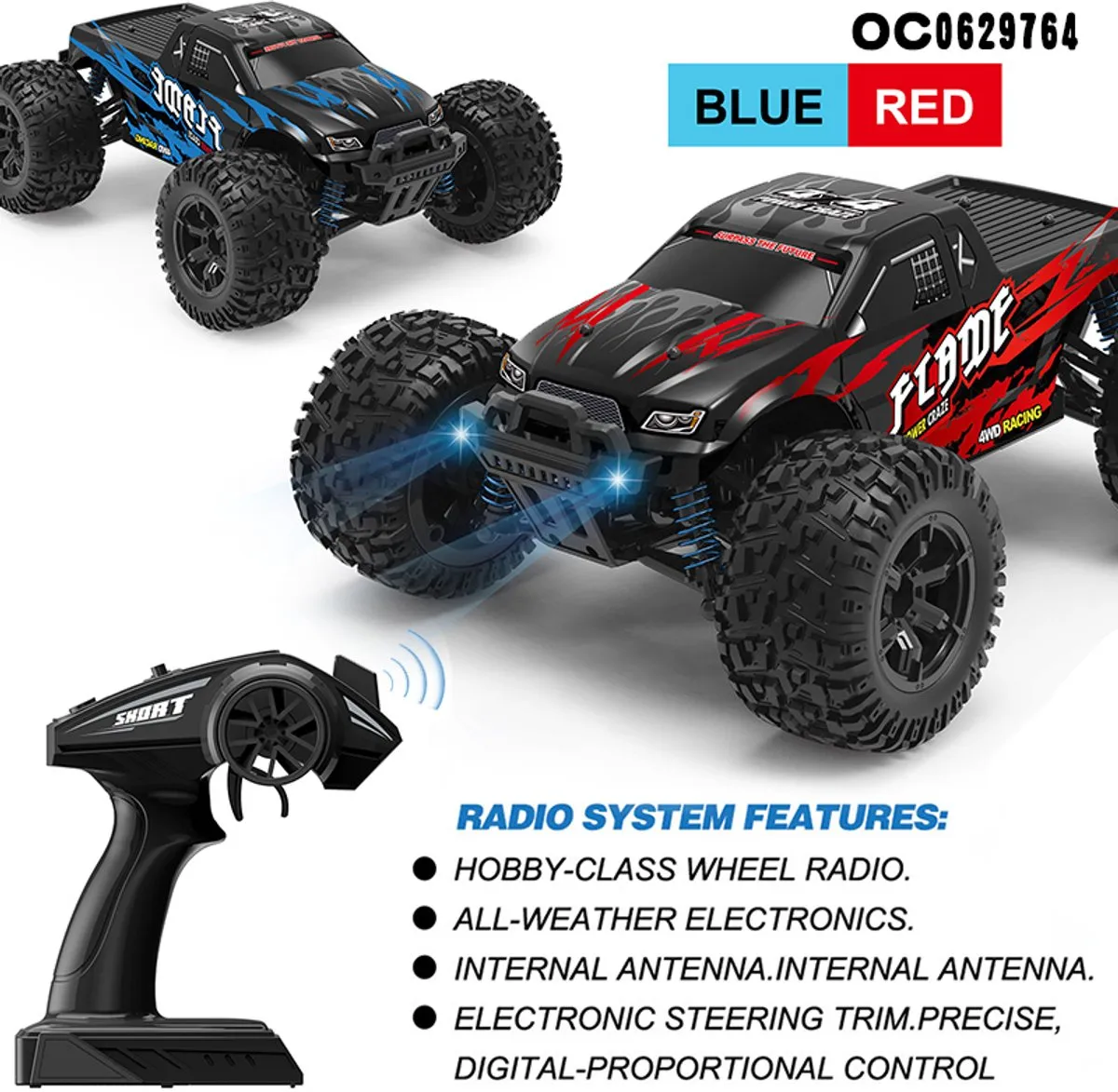 Deze RC Auto 1:16 4×4 Off-Road Racing Car bereikt snelheden tot 40 km/h en biedt maximale grip dankzij rubberen banden en onafhankelijke vering.