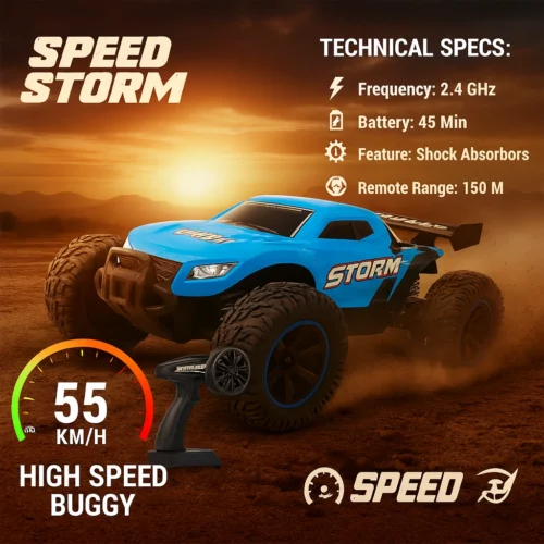 Ontdek de kracht en snelheid van de Speed Storm Offroad RC Auto – dé ultieme afstandsbestuurbare racewagen voor echte snelheidsduivels! Met zijn 1:10 schaal, krachtige 4WD-aandrijving en 2.4GHz afstandsbediening, is deze monster truck perfect voor zowel kinderen vanaf 14 jaar als volwassen RC-liefhebbers.