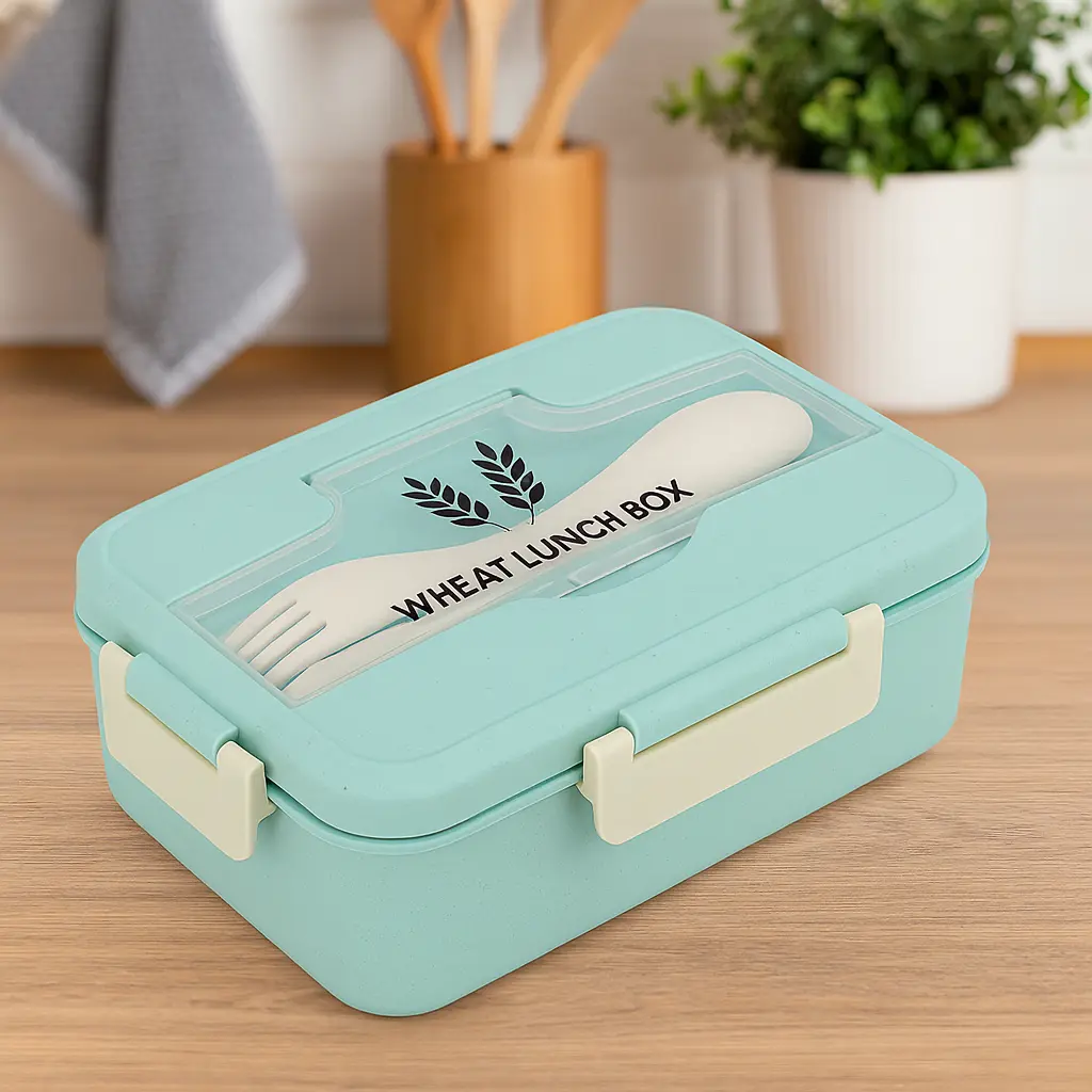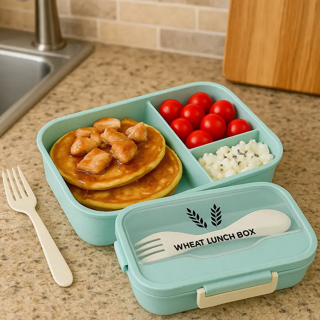 Het ontwerp is licht, compact en gemaakt van veilig BPA-vrij PP-materiaal. In het doorzichtige bovenvak zit het meegeleverde bestek, zodat je altijd alles bij de hand hebt. Perfect voor kinderen en volwassenen, voor school, werk, onderweg of een dagje uit.