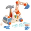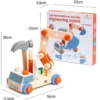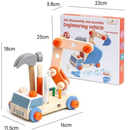 - Laat je kind spelenderwijs ontdekken, bouwen en leren met dit houten bouwvoertuig met gereedschap.